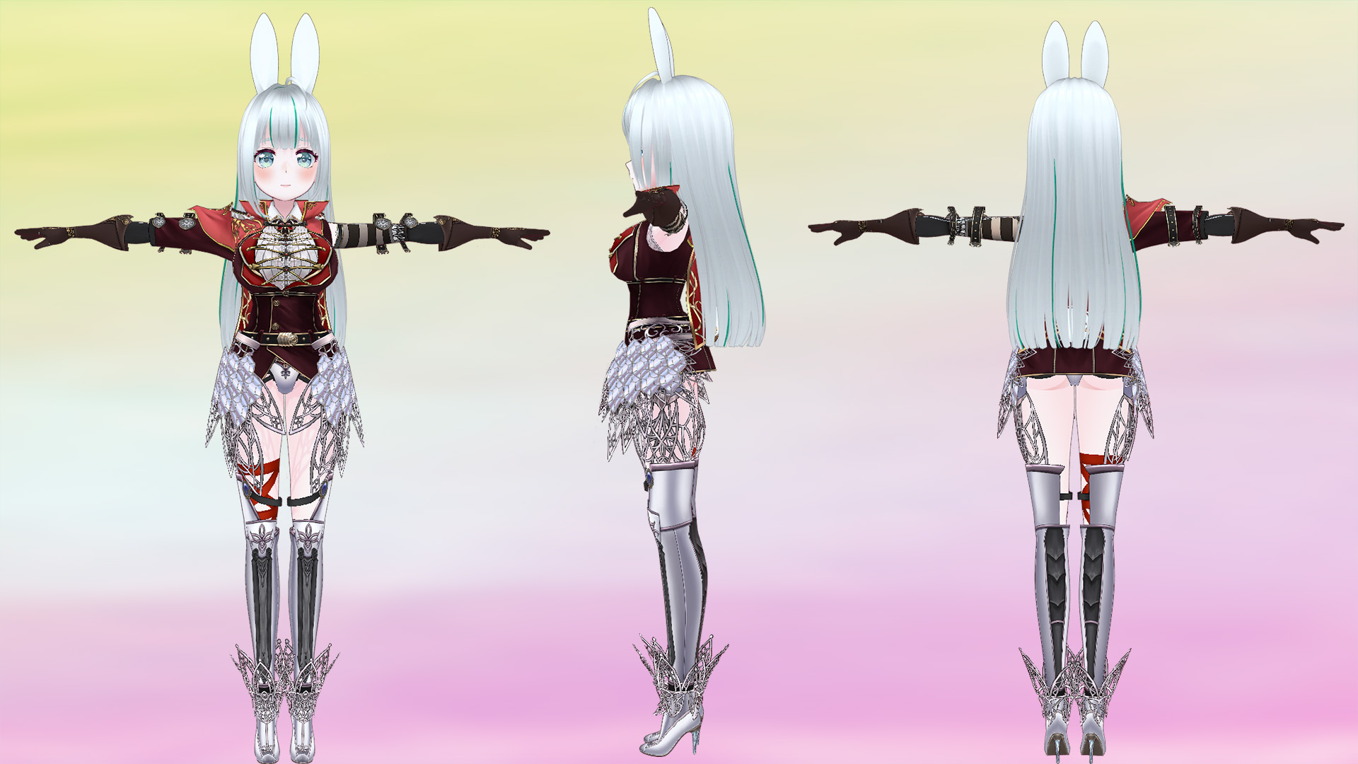 異世界の貴族をイメージした衣装です。14歳の兎人属です。