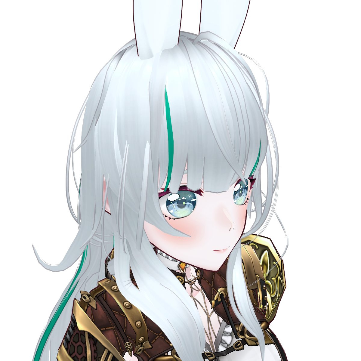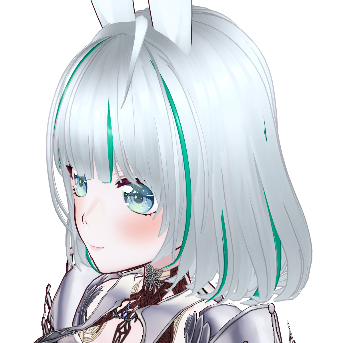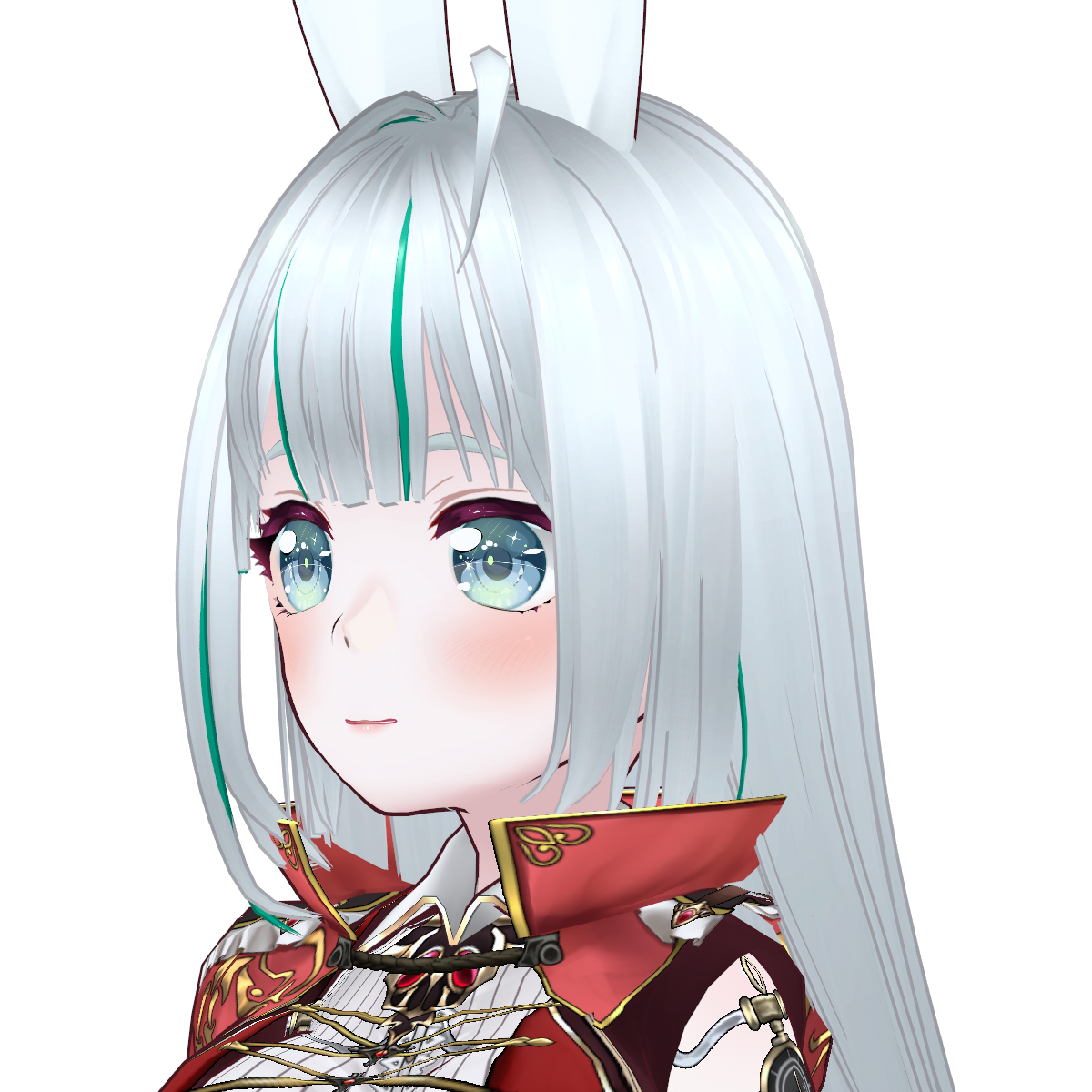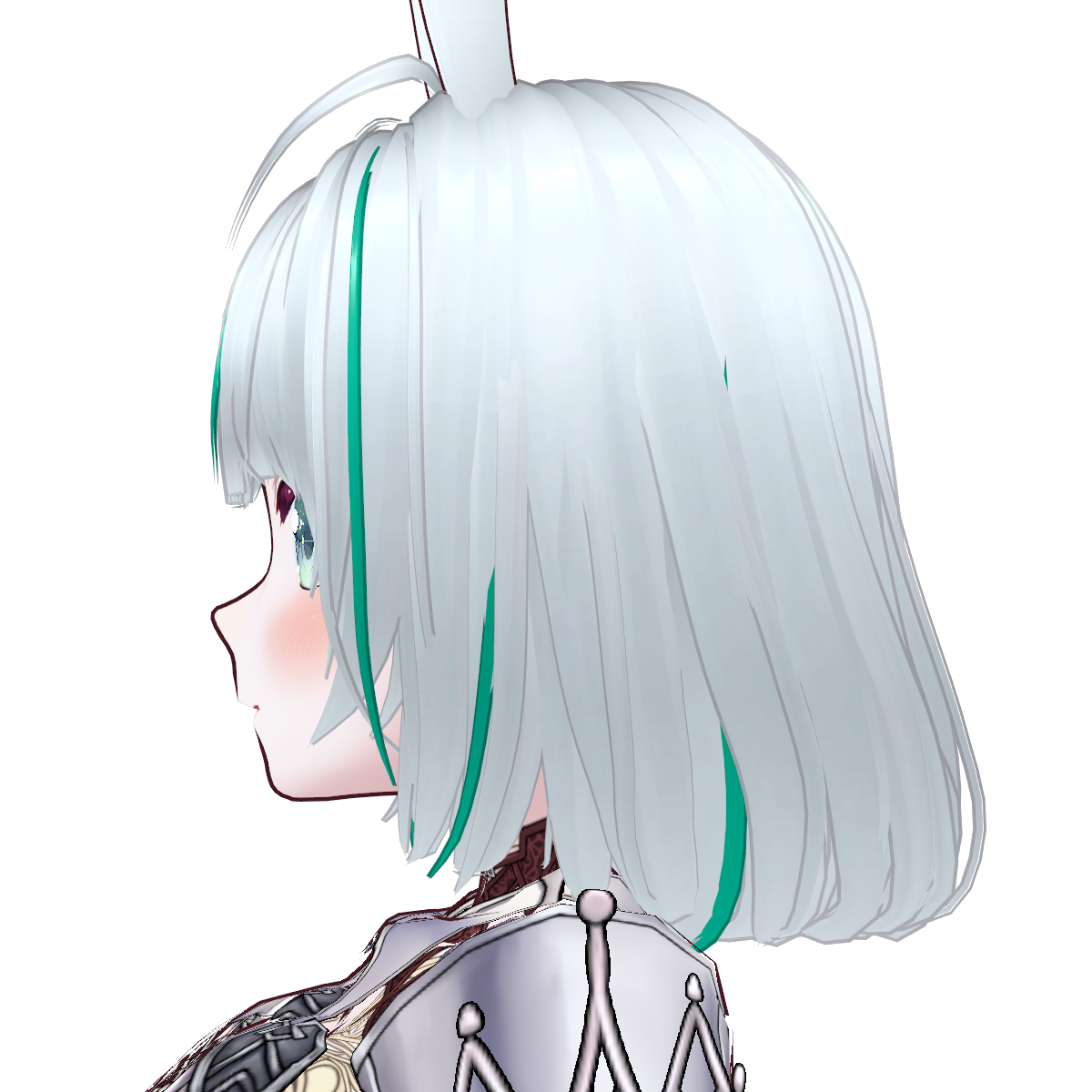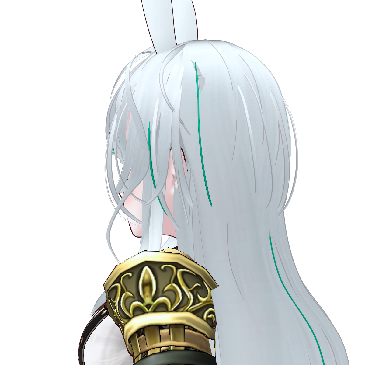 シルバーヘアで、うさ耳は頭から直に生えています。ポニーテールの位置は高めです。