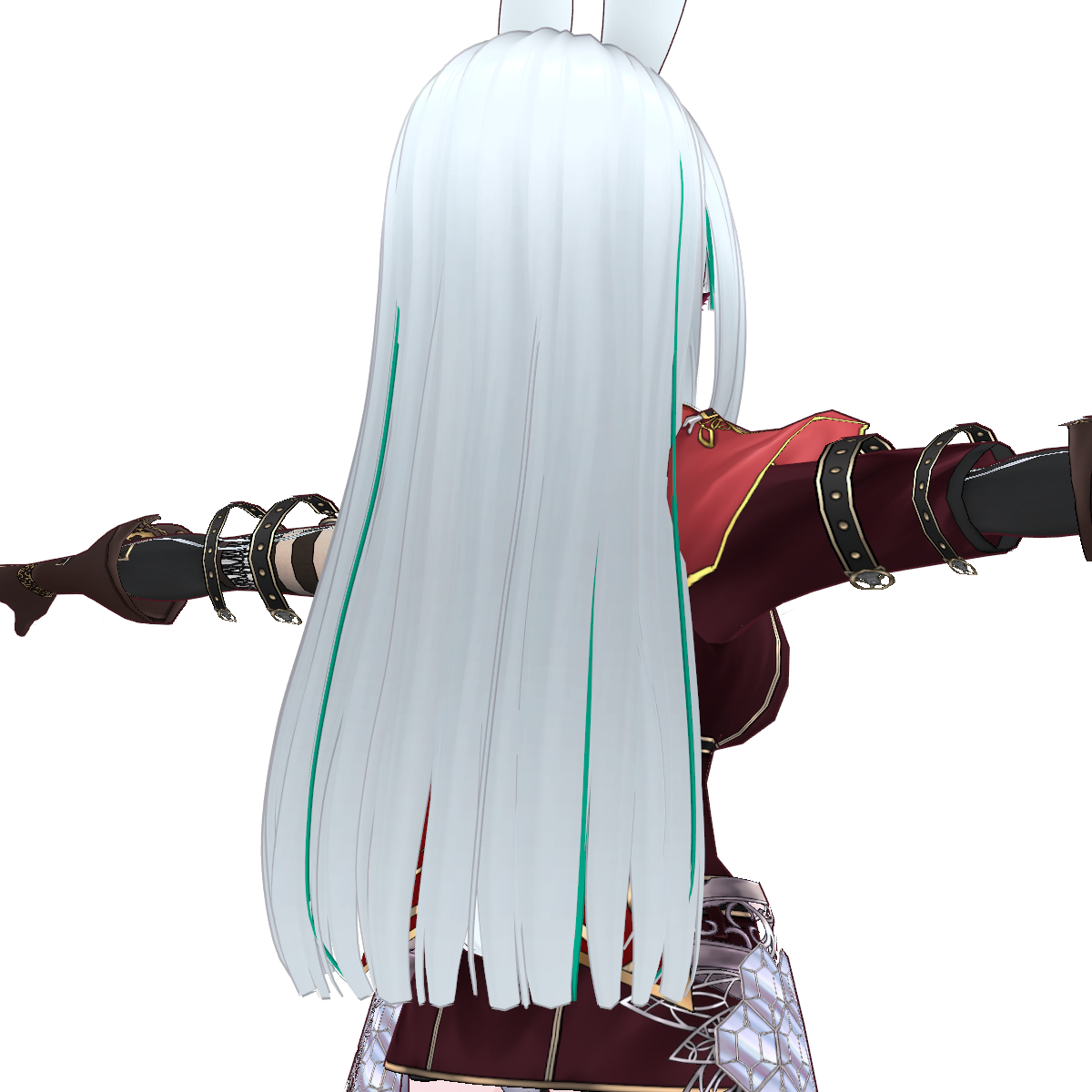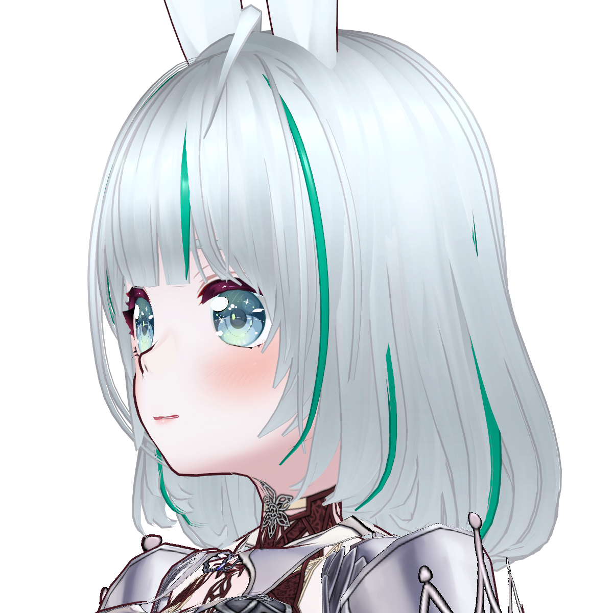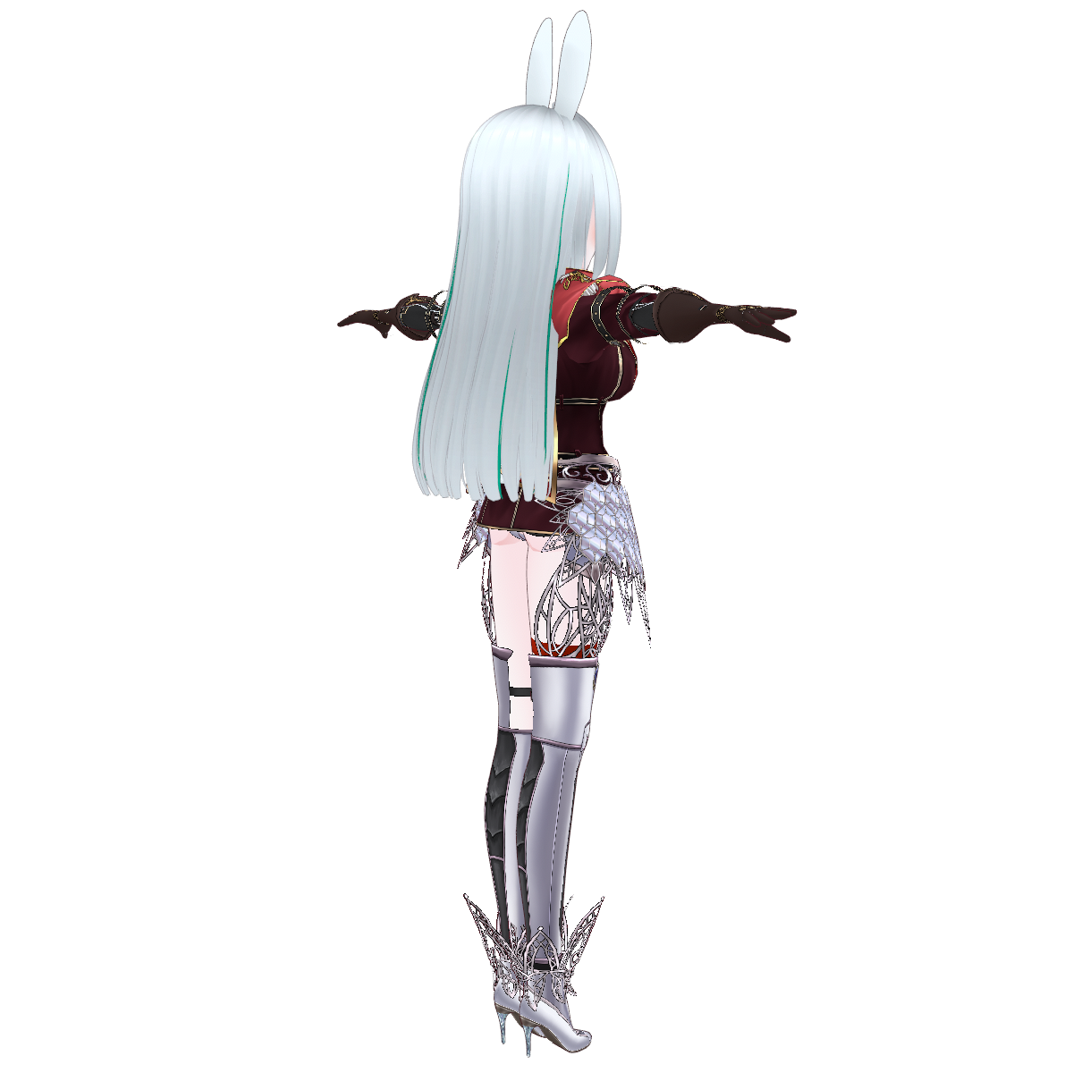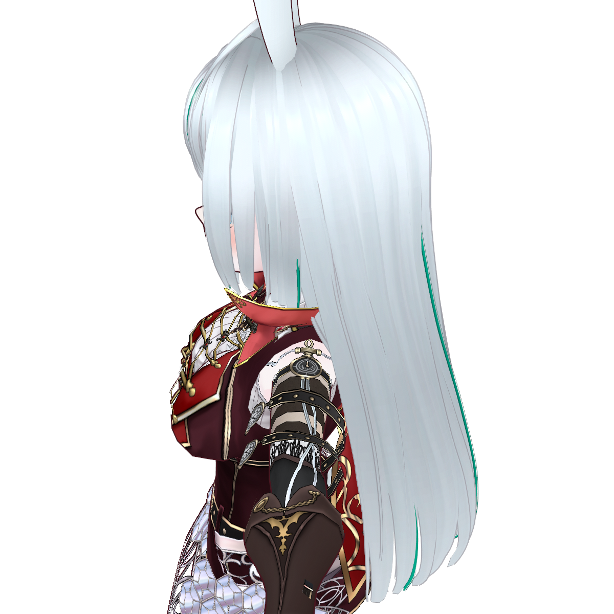 シルバーヘアで、うさ耳は頭から直に生えています。ポニーテールの位置は高めです。