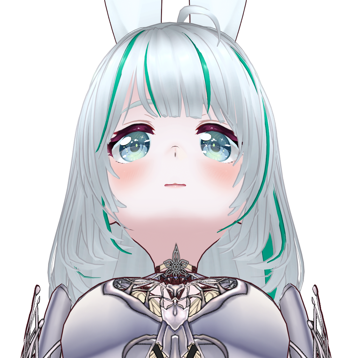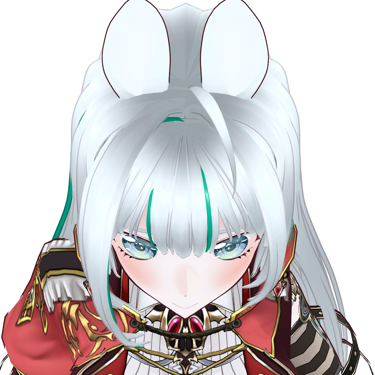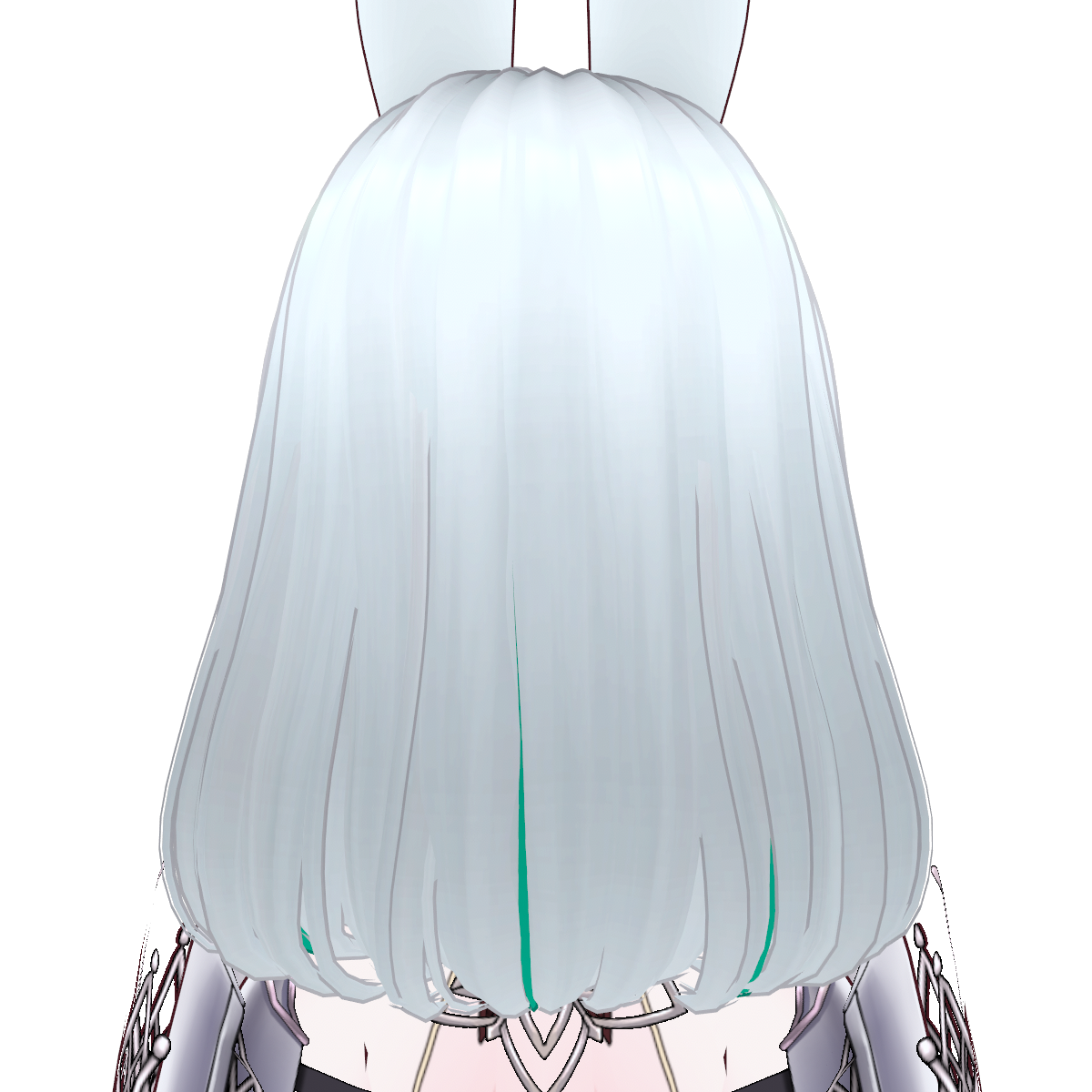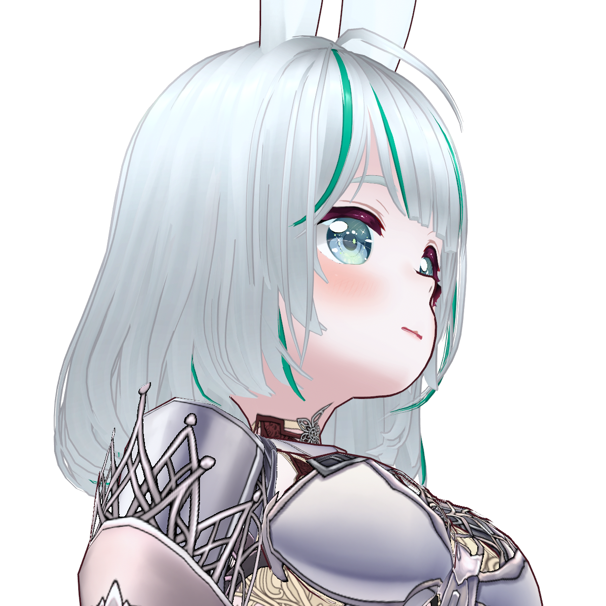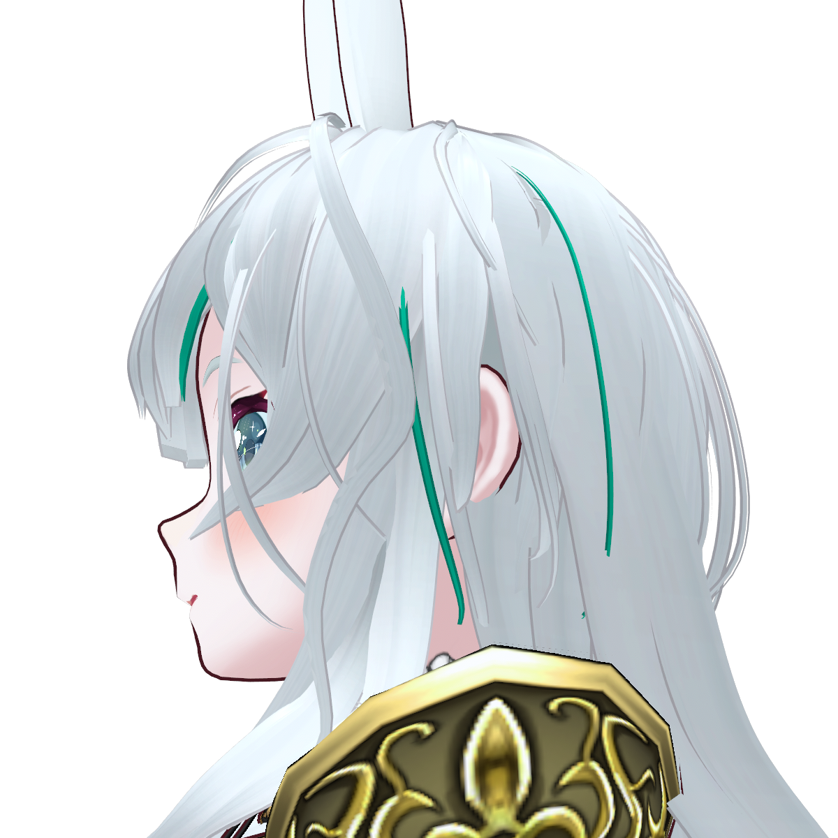 シルバーヘアで、うさ耳は頭から直に生えています。ポニーテールの位置は高めです。