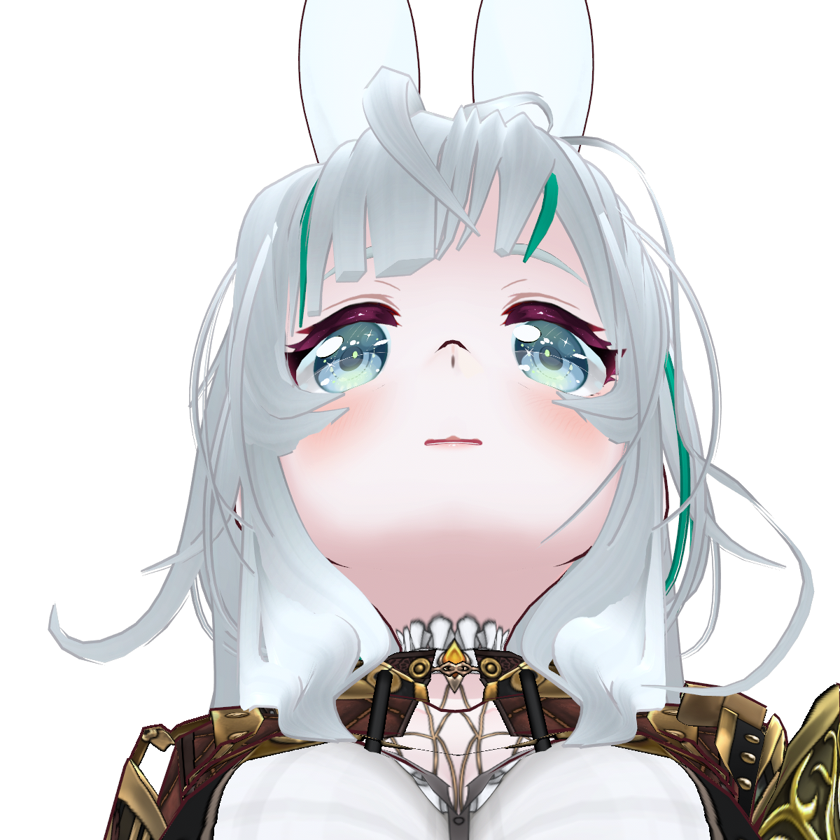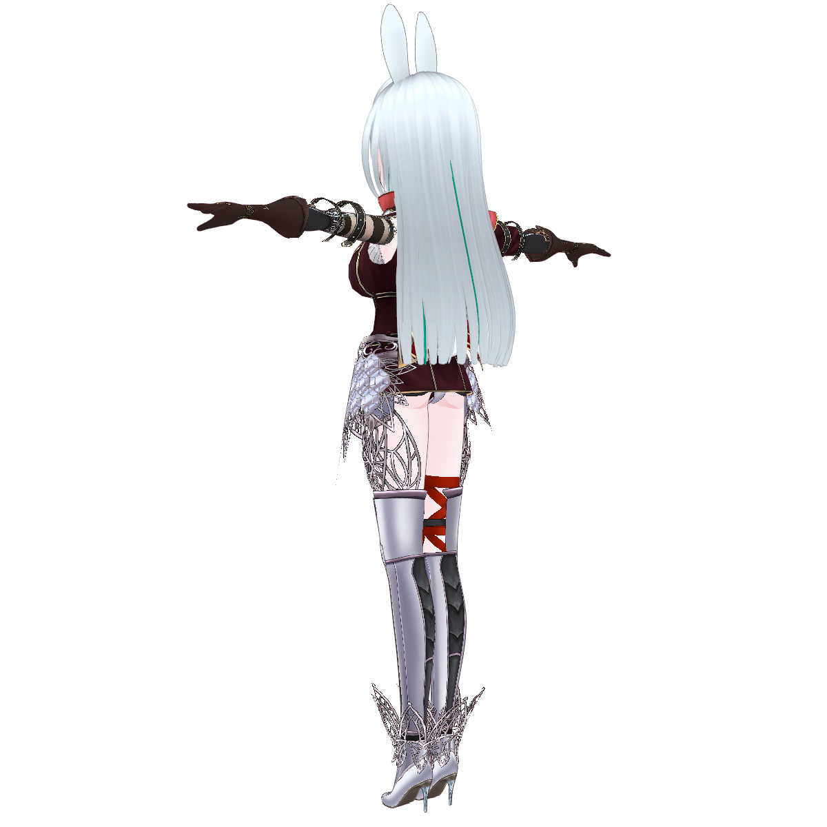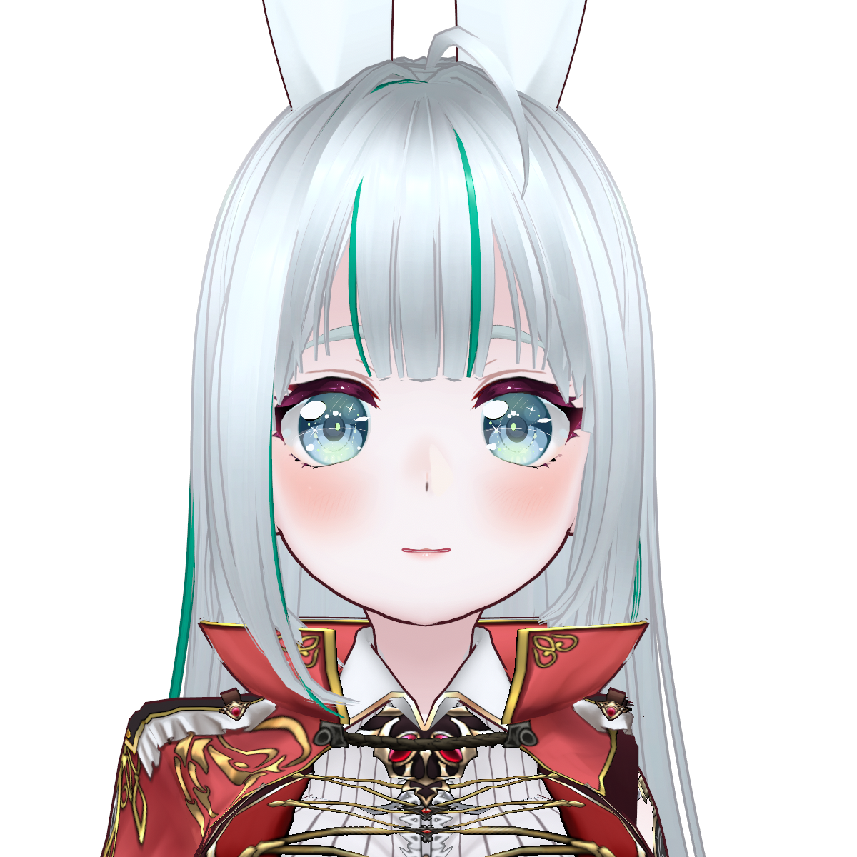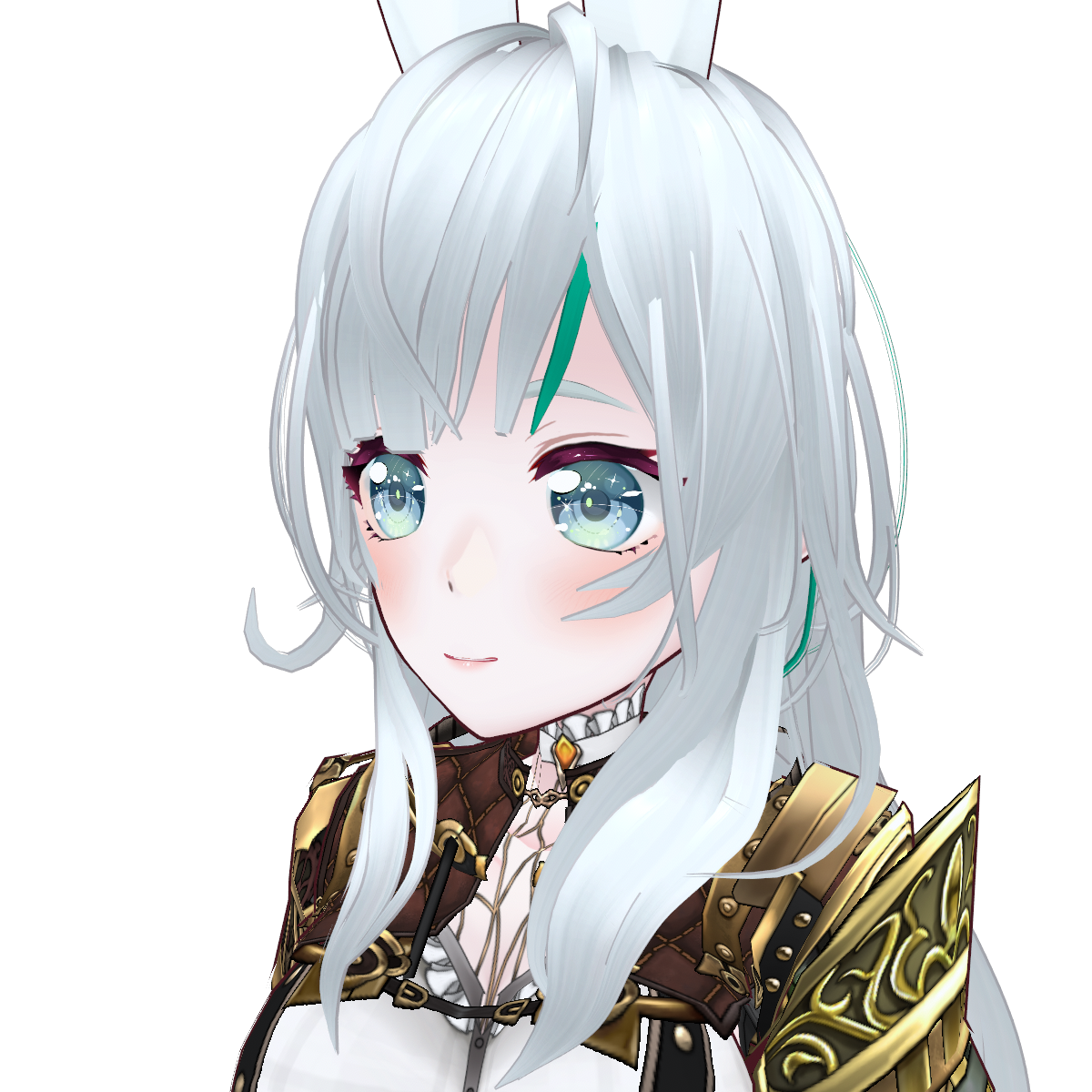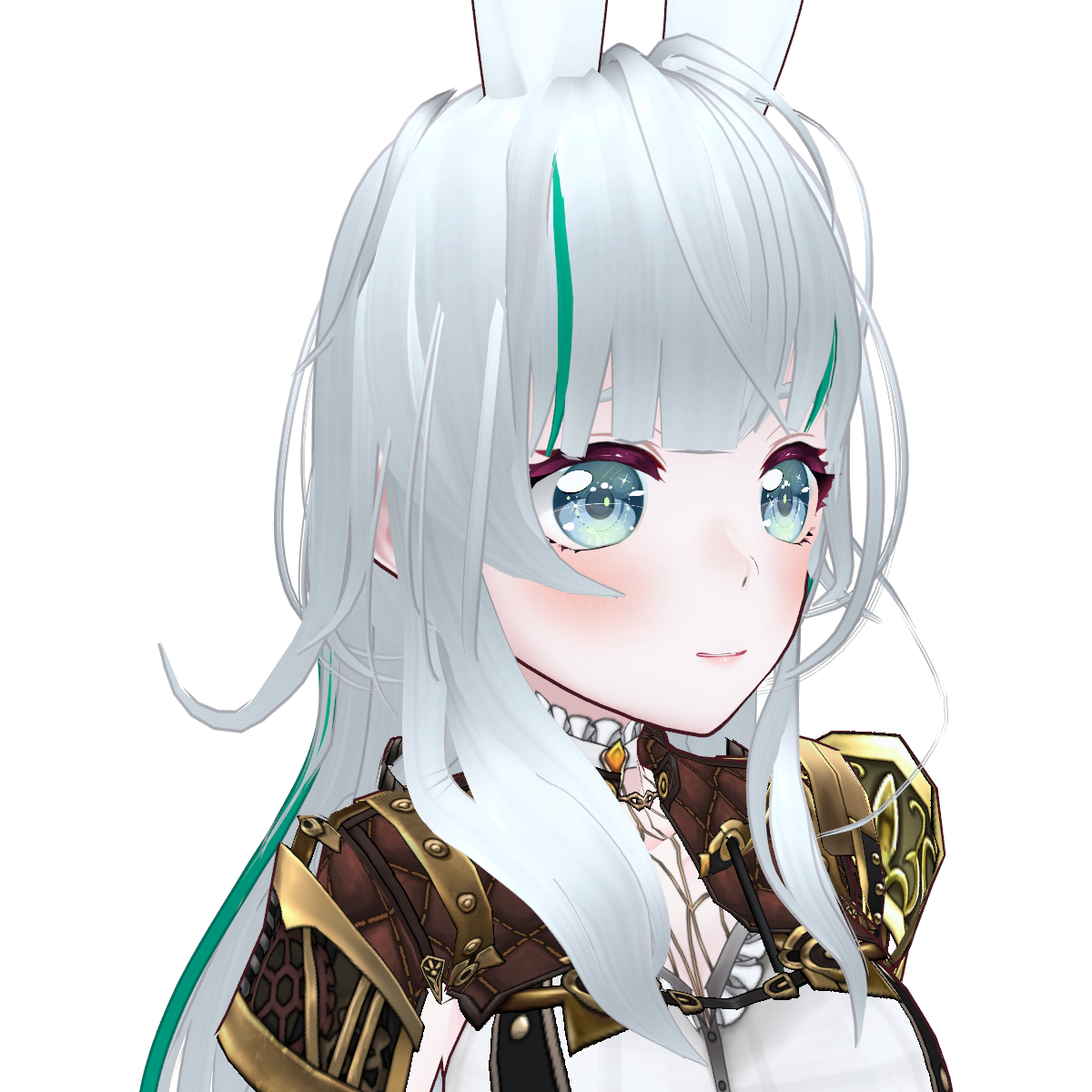 シルバーヘアで、うさ耳は頭から直に生えています。ポニーテールの位置は高めです。