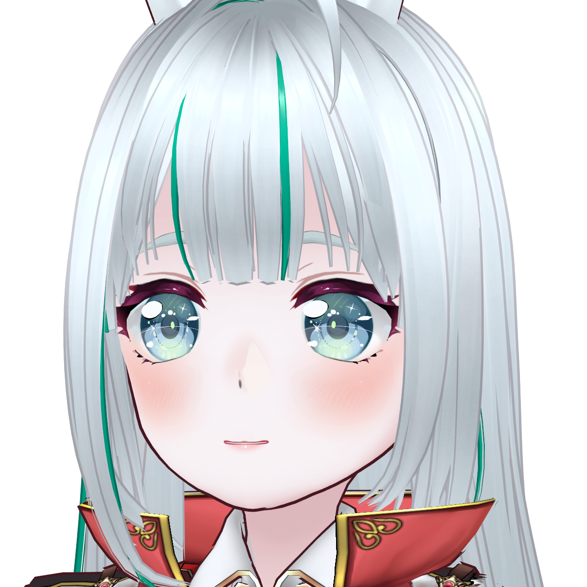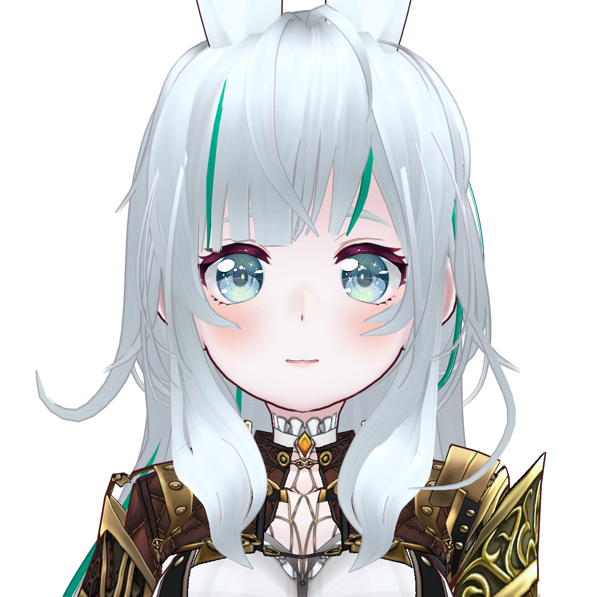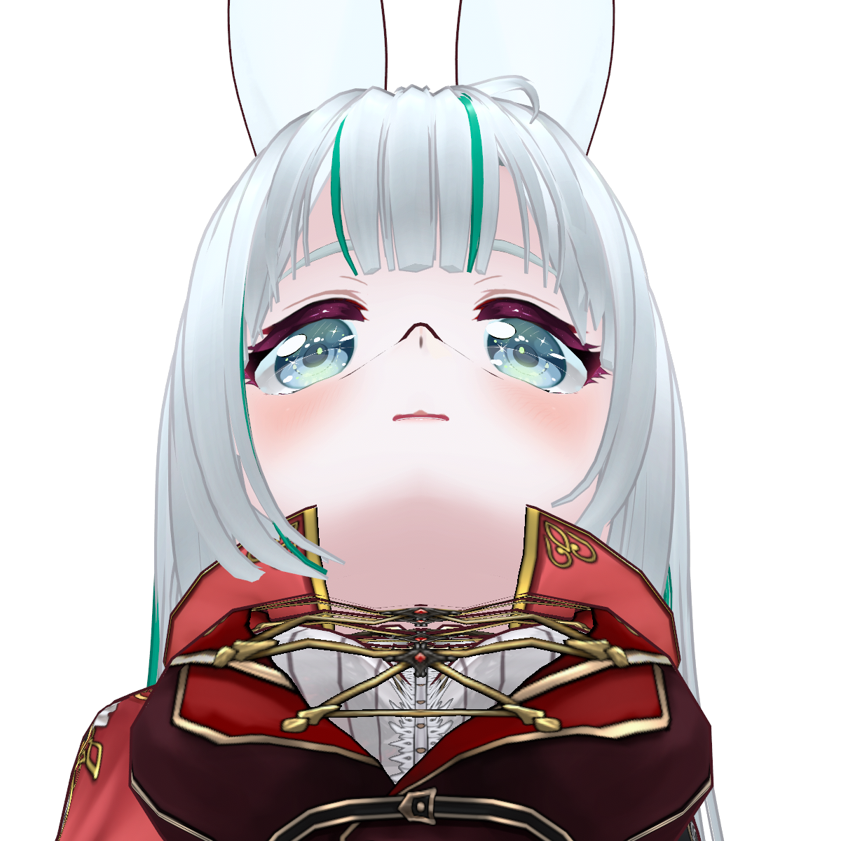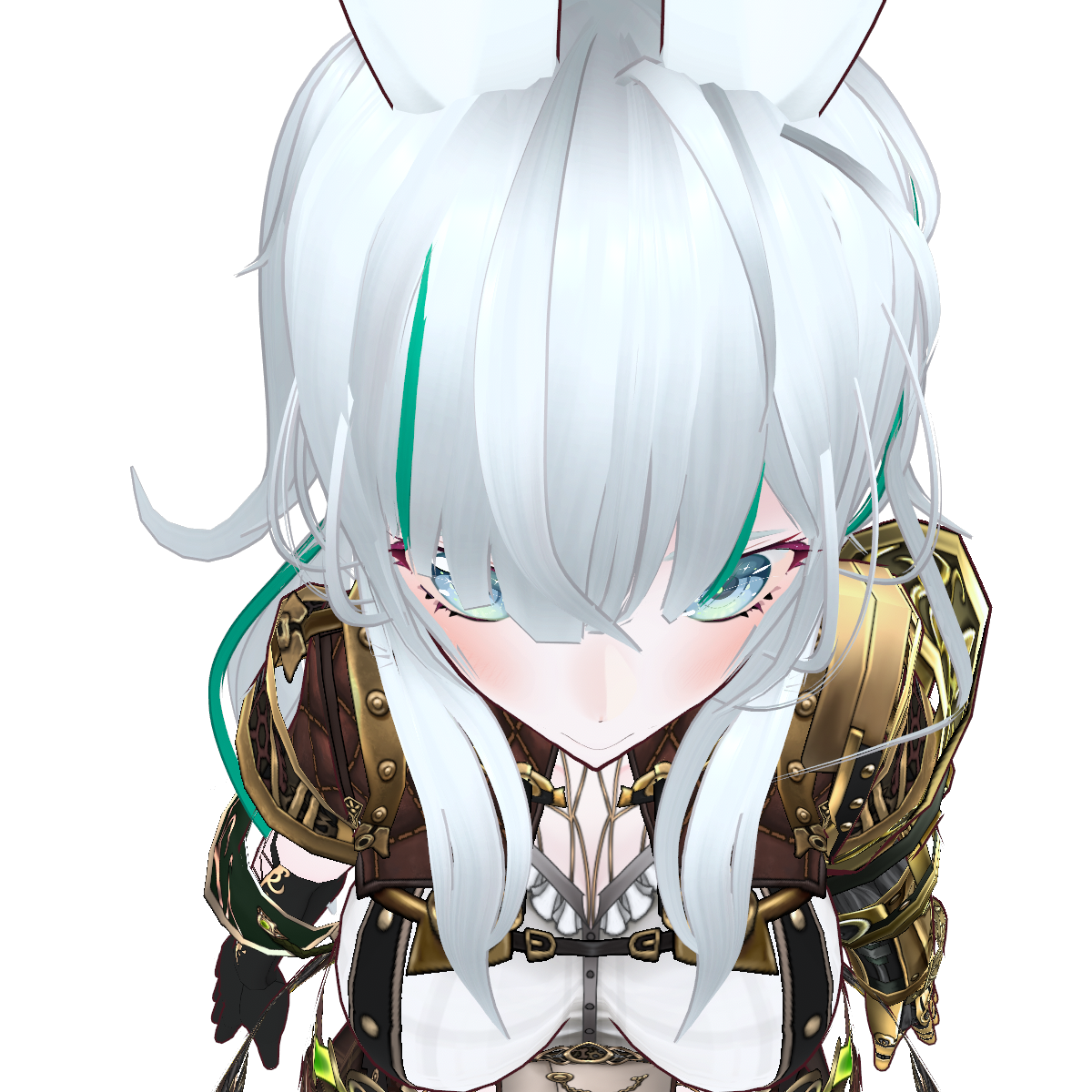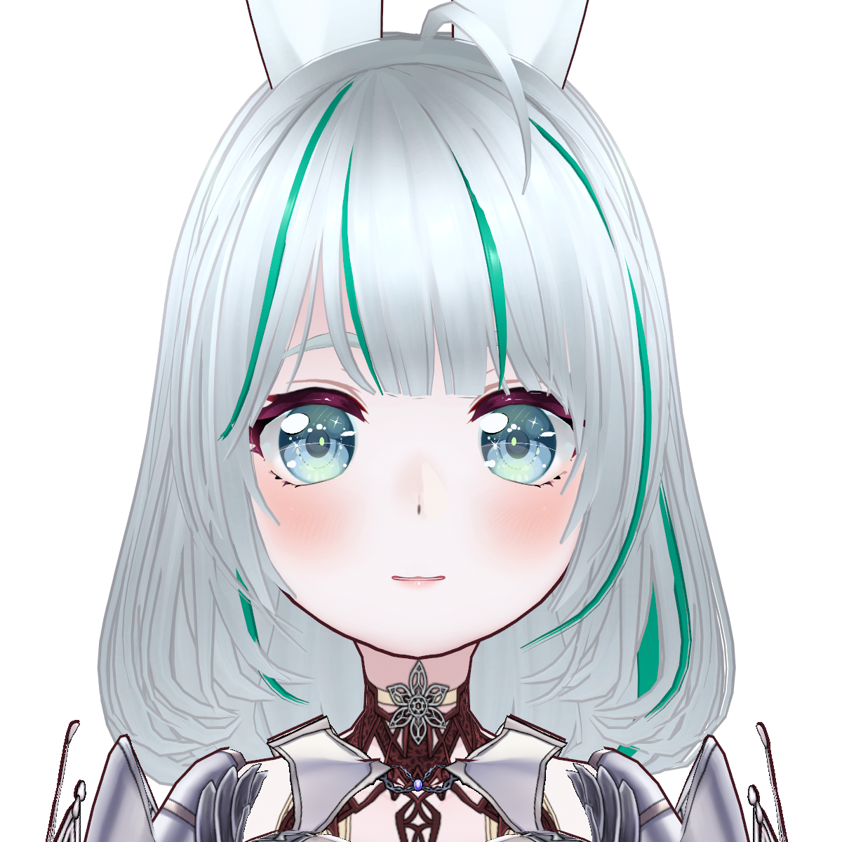 シルバーヘアで、うさ耳は頭から直に生えています。ポニーテールの位置は高めです。
