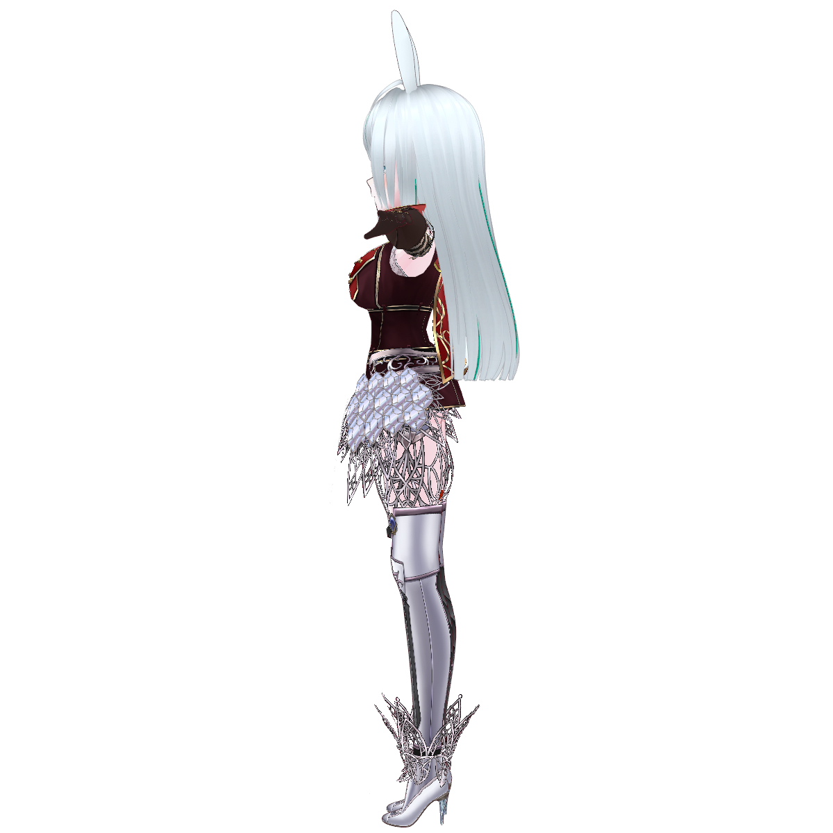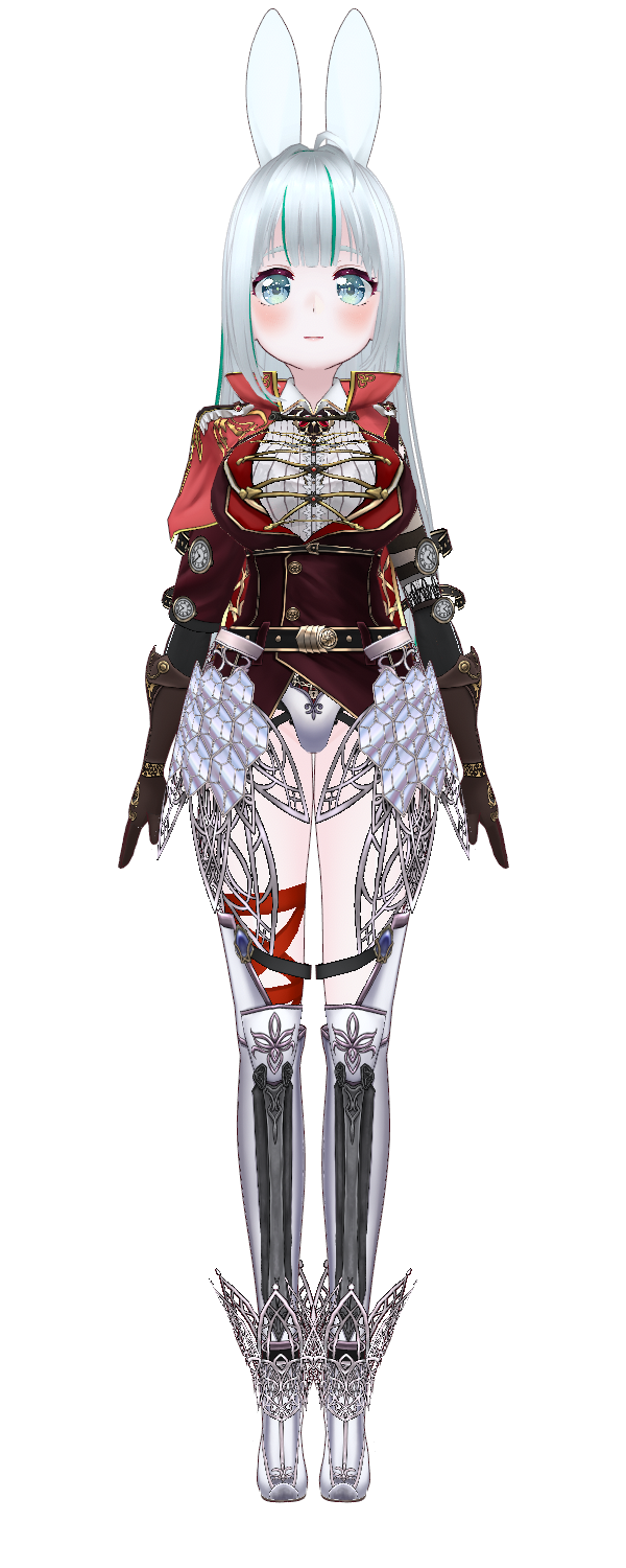 白い軍服・軍帽(ミリタリーユニフォーム)です。兎人属の属長として軍隊をまとめるときのスタイル。かわいさと格好良さが同居しているようなスタイルです。