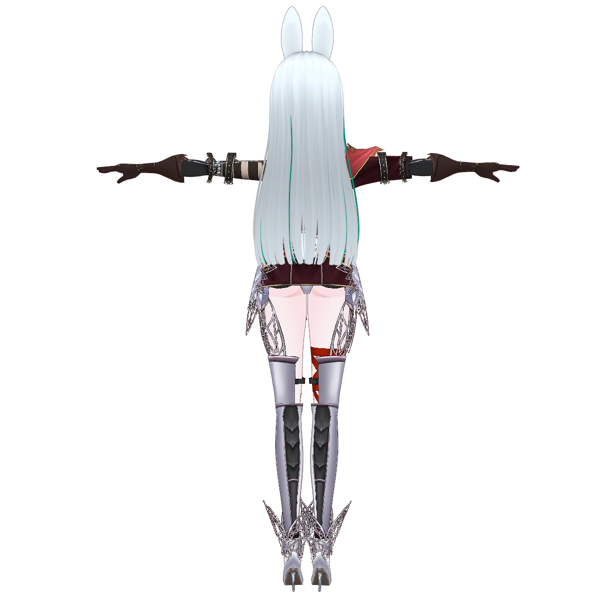 うさ耳は頭から直に生えており、意外に太めで先っぽは少しとがっています。うさ耳の形で悩まれるイラストレーター様が多いので形をご確認ください。アホ毛があります。メイド風のヘッドバンドをしています。